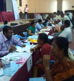 An eye camp was set up in Pondicherry, India. Thousands of vision screenings and ocular surgeries were performed and free eyeglasses handed out.